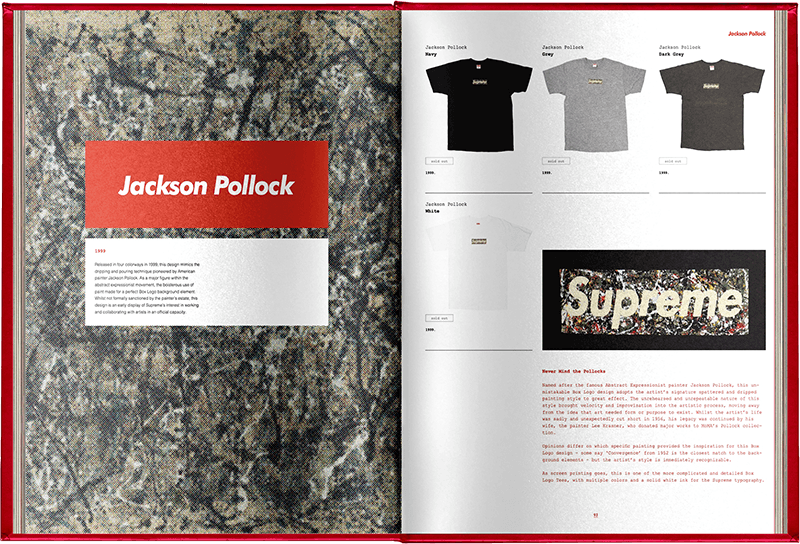 This accompanying book chronicles The Box Logo Collection in its entirety, showcasing each of the different colorways of T-shirt, backed up with data and information: a document and physical timeline of street culture, that takes us from 1994 right up to today.